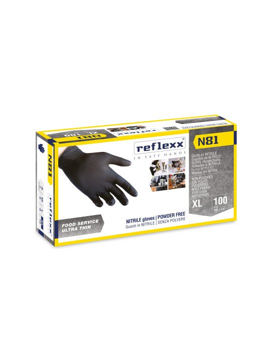 Reflexx N81L Guanti in Nitrile Neri Senza Polvere L Confezione da 100 Pezzi