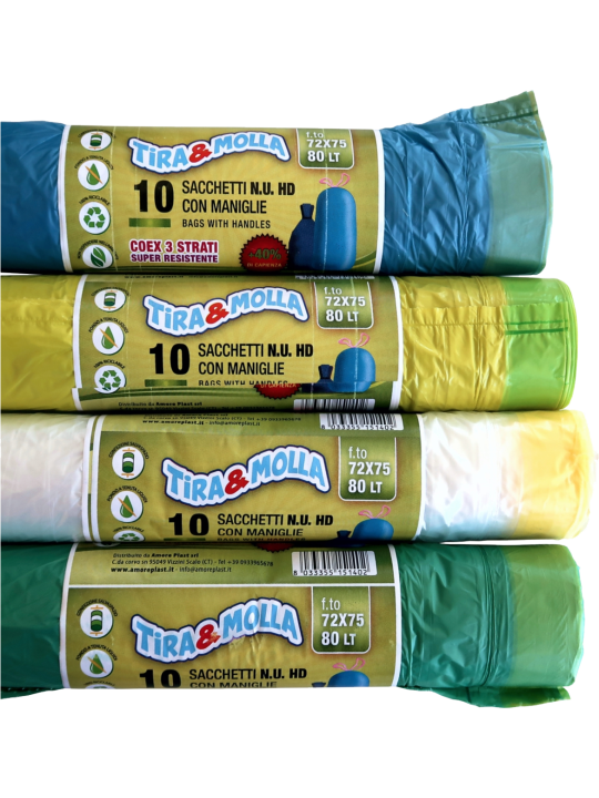 Amore Plast Sacchi N.U. cm 72x75 Trasparenti con Lacci Cartone da 48 Rotoli da 10 Pezzi