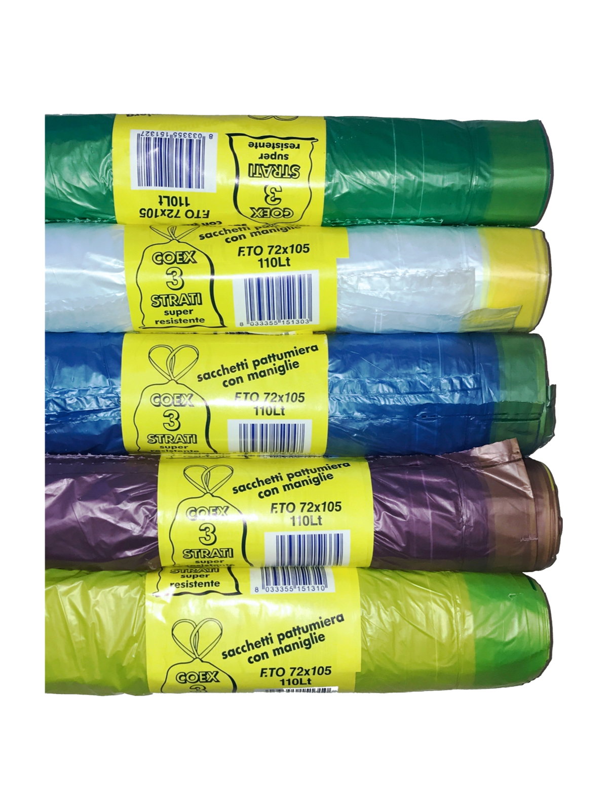 Amore Plast Sacchi N.U. cm 72x105 Gialli con Lacci Cartone da 35 Rotoli da 10 Pezzi
